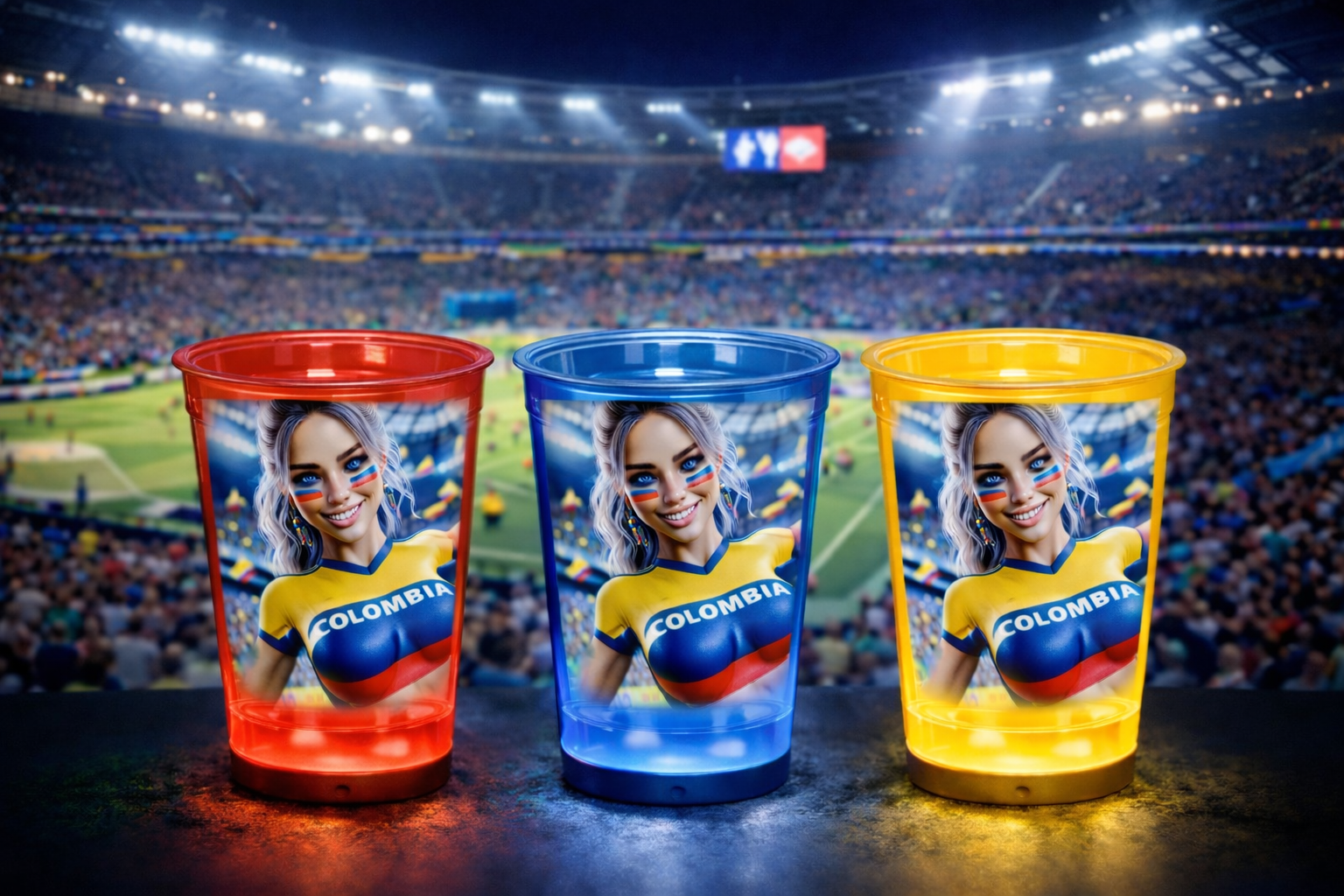 You can use a combination of LED Cups and LED Ice Cubes to showcase your country and your team with pride!