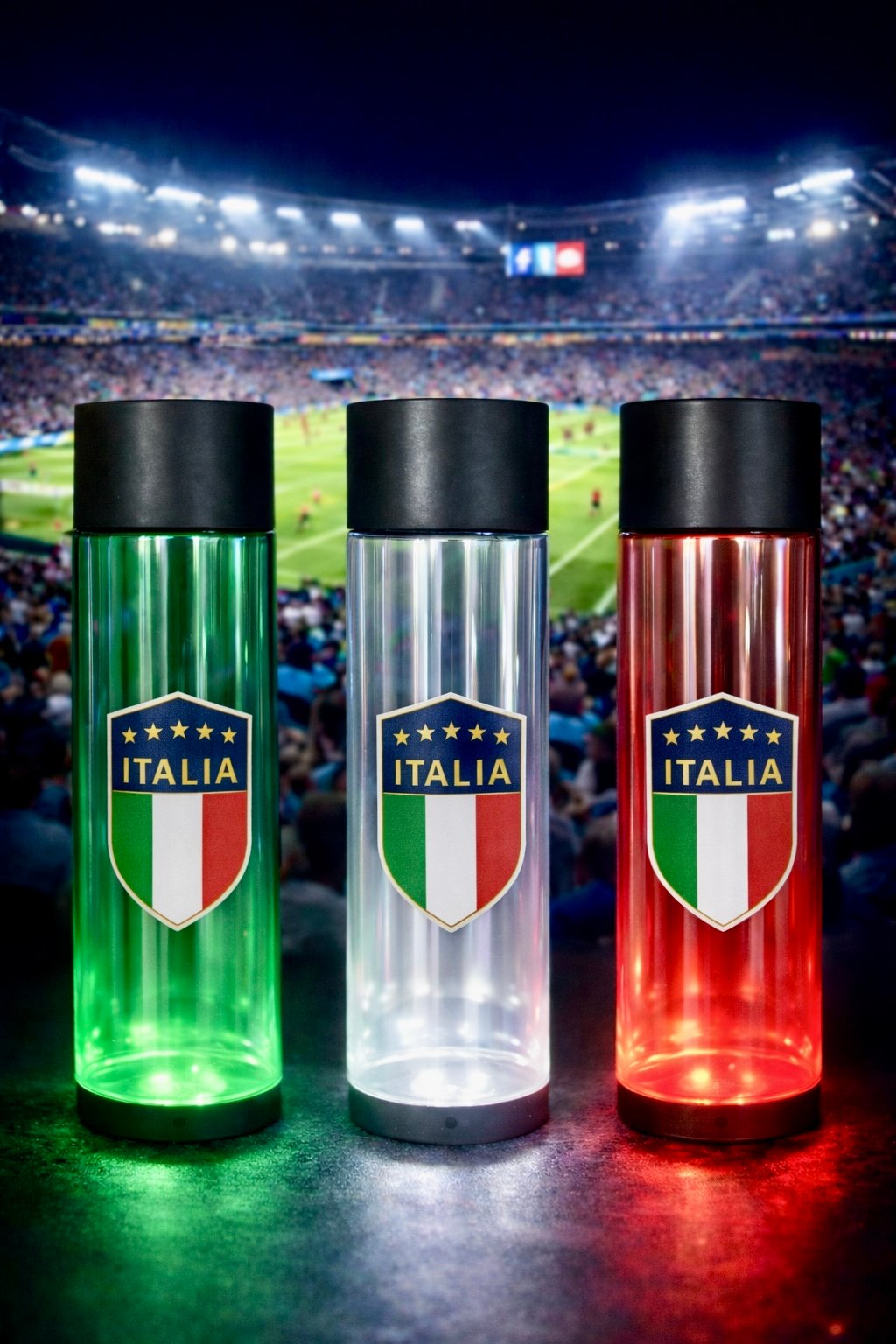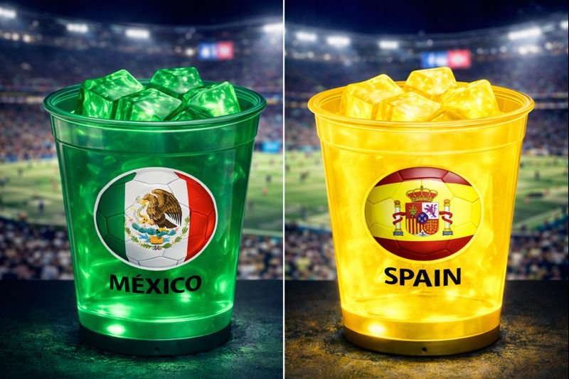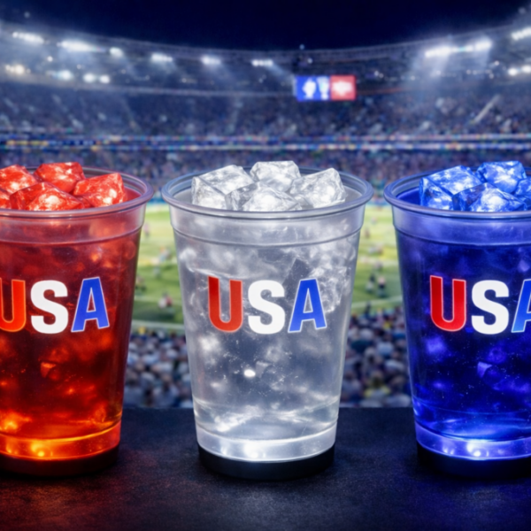 For the first time ever, LED Cups, Bottles, and Ice Cubes that scroll through team colors – from USA to any club, any game.