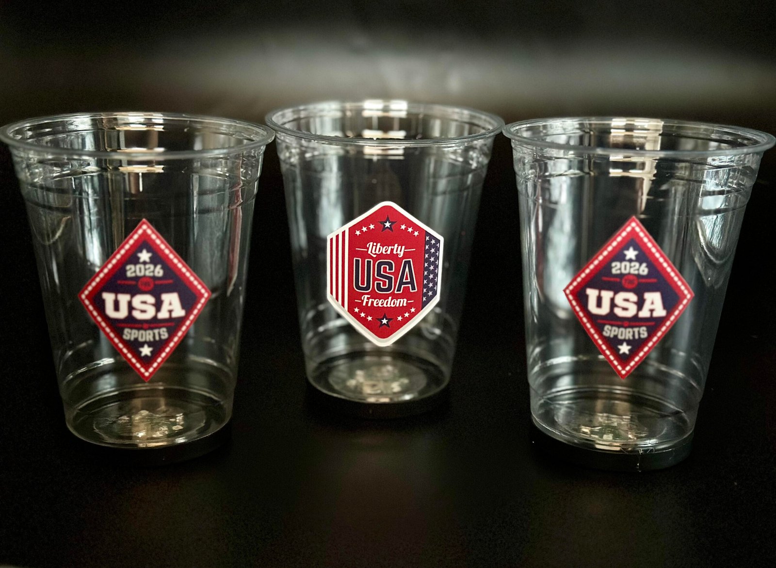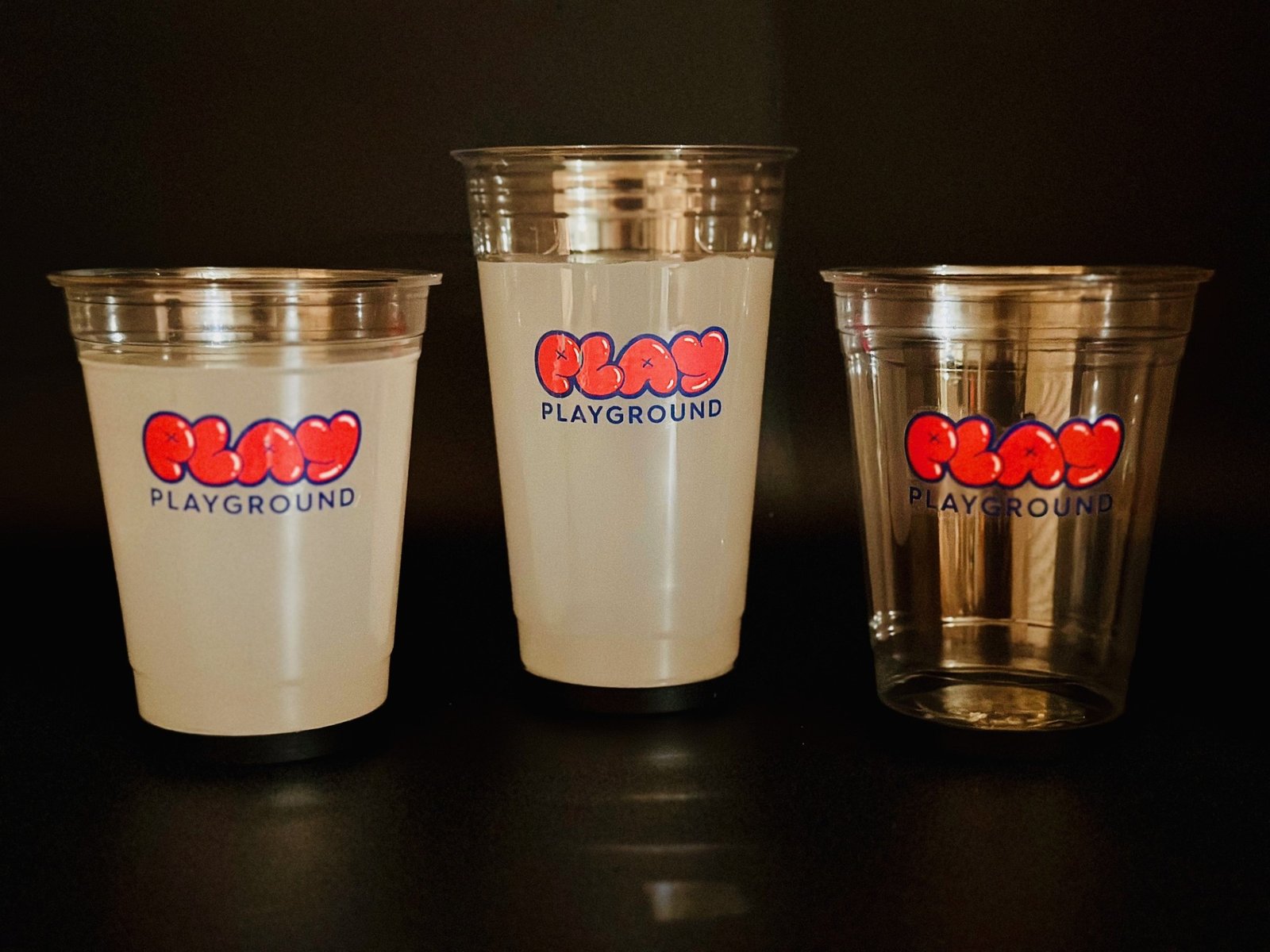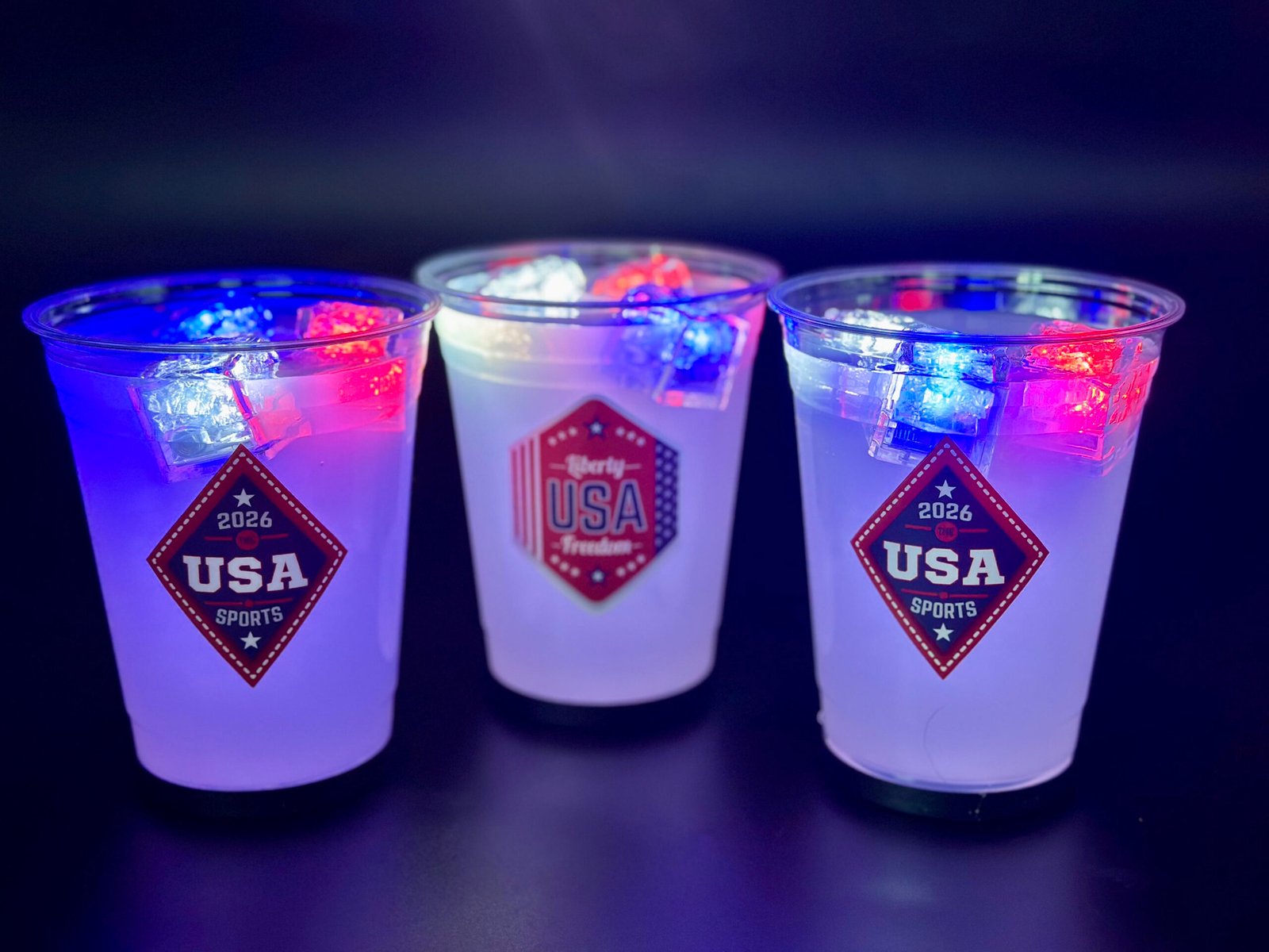 Instead of traditional advertising, brands can literally put a light on their logo. One side of the cup features team logo/colors/brand and the reverse side features “Sponsored by” with their logo.